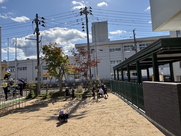 さわやかな秋になりました。今日(10/23)は年中組が1階の園庭で遊んでいます。寒い冬が来る前に木の葉が赤や黄色に色づく園庭で秋をたくさん感じたり、風をきって走る姿が見られました。