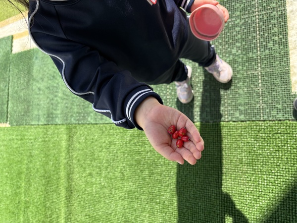 赤い木の実を見つけてとても嬉しそうな笑顔が印象的でした。秋探しがまだまだ続きそうですね。
