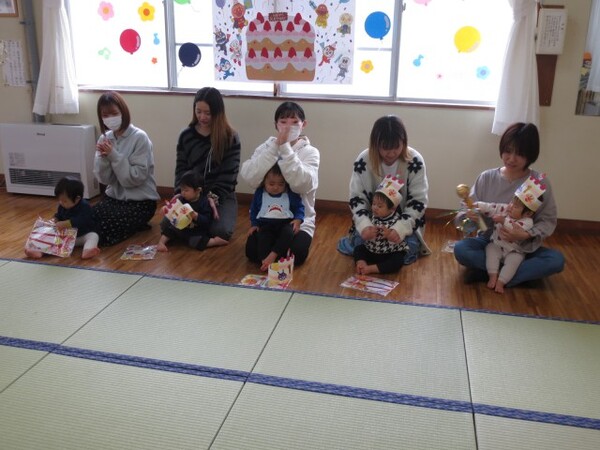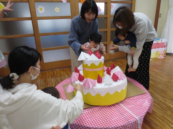 また10.11.12月生まれのお誕生会では、大きなケーキをみんなで作って、楽しくお祝いしました🎂